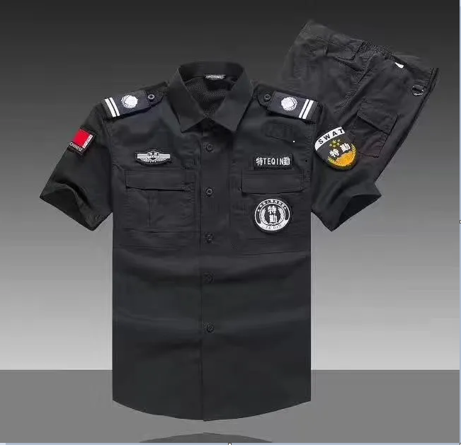 保安服直擺款夏季短袖套裝男透氣耐磨物業(yè)酒店門衛(wèi)保安工作服戶外作訓(xùn)服JCZXF003黑色(無配件)XL-番禺團體服裝定做