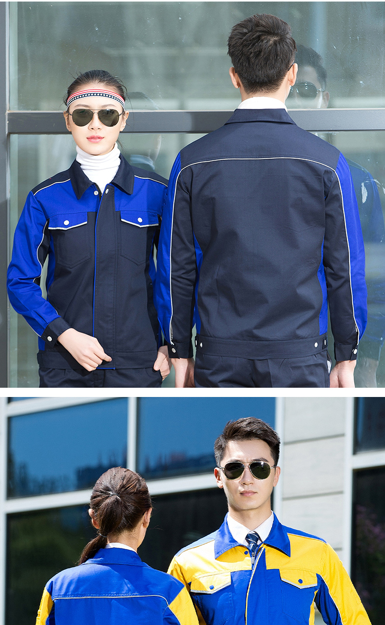 秋冬工作服定制,全工藝滌棉厚紗卡拼色長(zhǎng)袖工裝外套20.0%棉 80.0%聚酯纖維(滌綸)